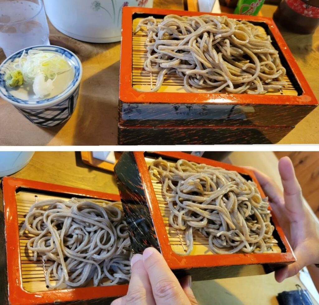 ひと口すすった瞬間に“しっかりしたコシ”と“そばの香り”が広がる、食べ応えのある蕎麦!やや太めに打たれた麺は噛むほどにそばの風味が感じられ、のどごしだけでなく、しっかり噛んで楽しめるタイプ!しかも1人前で2枚あり、ボリューム満点です。