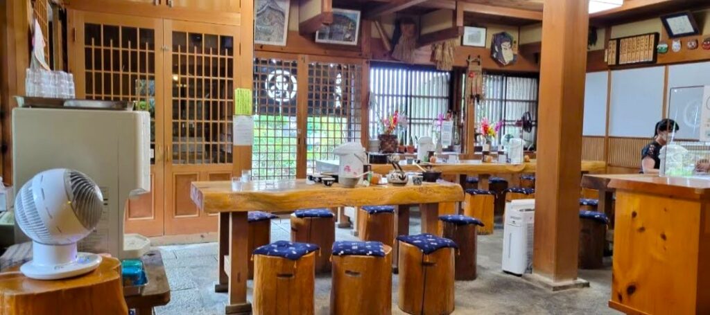 そんな馬籠宿の坂を登り切った高台にあるそば処「恵盛庵」(けいせいあん)は、伝統的な日本家屋の造りで木造二階建ての落ち着いた佇まい。古い趣を残した建物で、馬籠宿の街並みにしっくり溶け込んでいます。店内の石臼で長野県産の玄そばを自家製粉している手打ちそばを堪能できるお店です。
