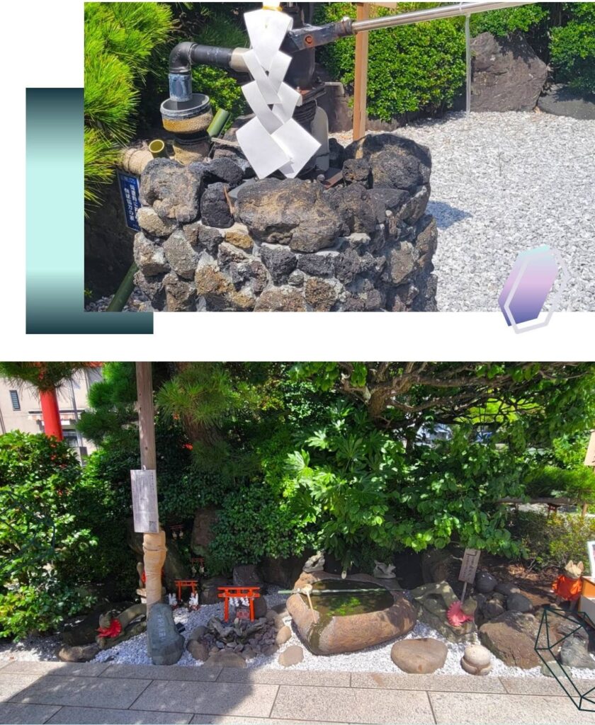 境内には柄杓で水を垂らすと、反響して涼しげな音が地下から聞こえてくる水琴窟(すいきんくつ)があります。
