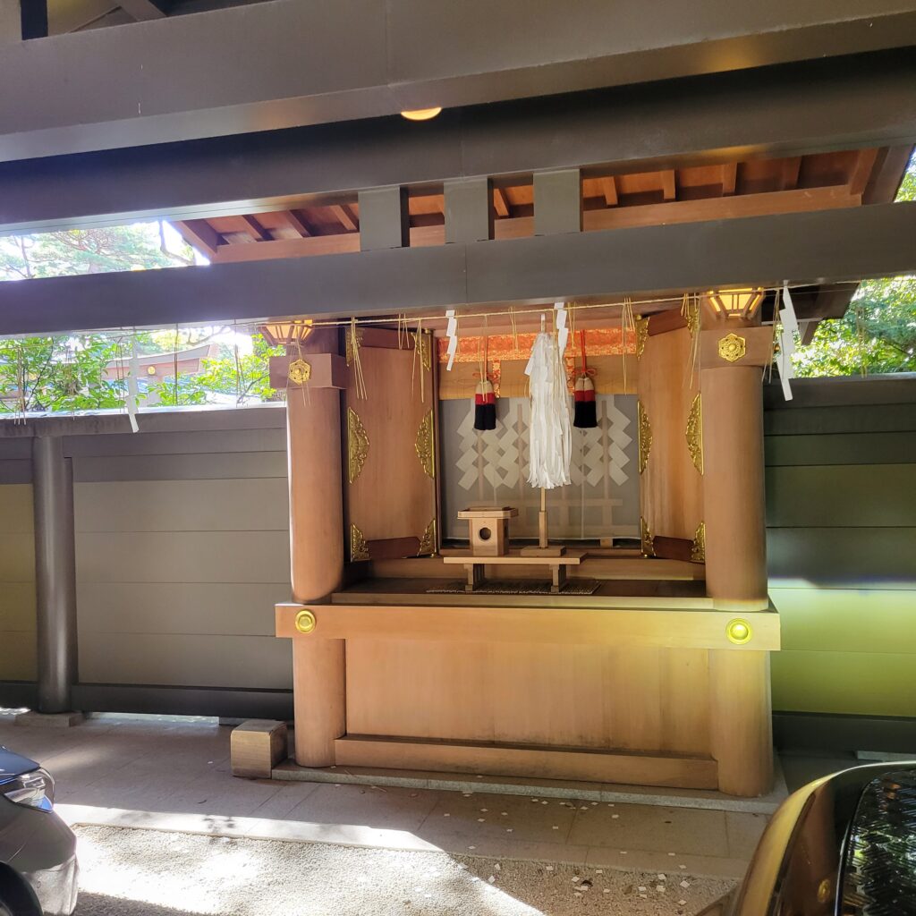本殿から少し南に進むと右手に古神符納所がありますので、納めに行く少しの間なら車をそのまま停めさせてくれます。