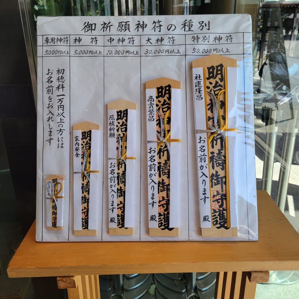 クルマ祓いの金額は5000円~可能で、金額によってお下がり(撤下品)の内容やお札の大きさ・記名サービスが異なります。