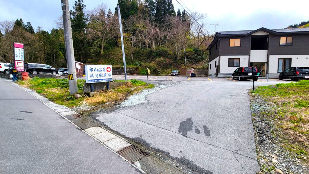 温泉街に駐車スペースはないので、手前にある「銀山温泉共同駐車場」に停めて歩きます。