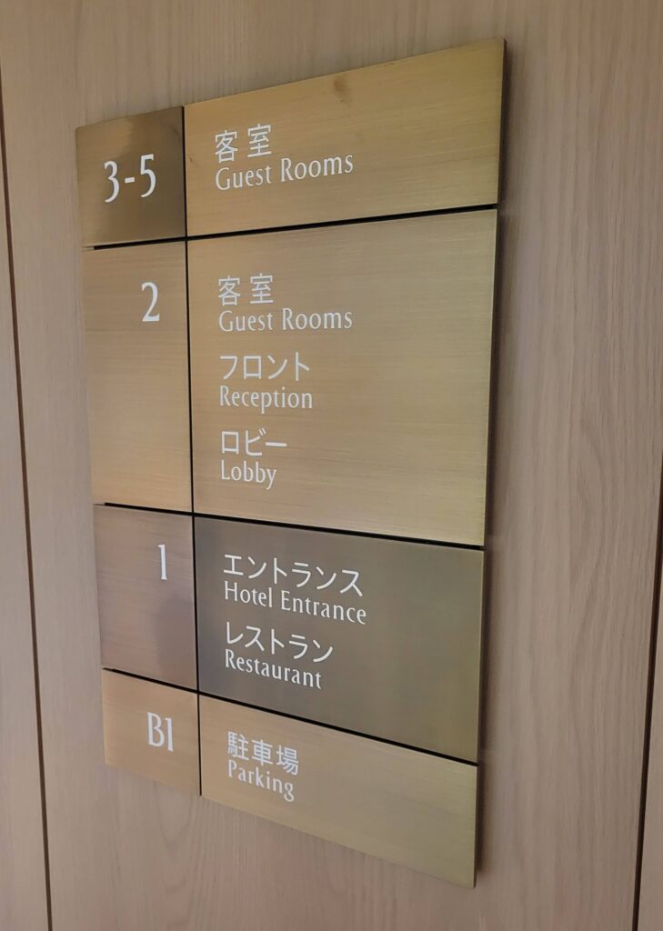 一階はエントランスと無印良品のレストラン、2階はフロントとロビー、喫煙所やコインランドリーなどの共用施設があり、3階から5階は客室です。