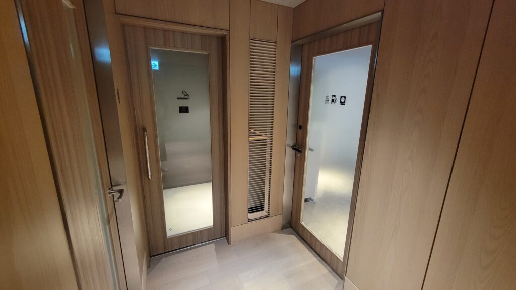 フロントの奥へ進むと喫煙所とコインランドリーが設置しているコーナーがあります。