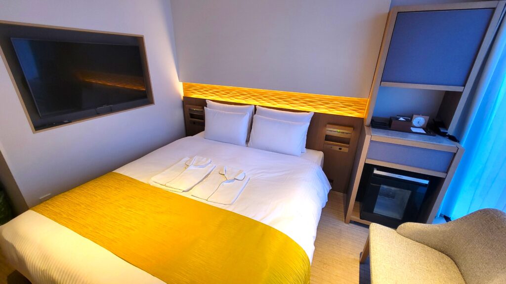 素泊まりプランを利用すれば、リーズナブルな料金で宿泊可能。今回は ダブルサイズのベッドがあるお部屋 に宿泊したので、館内の雰囲気やお部屋の様子を詳しく紹介します。